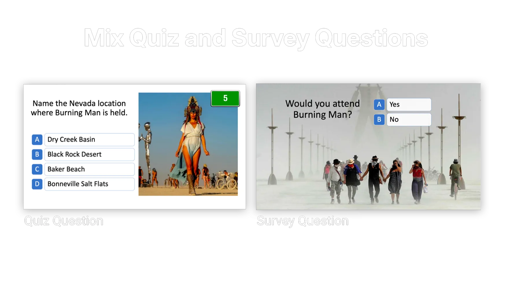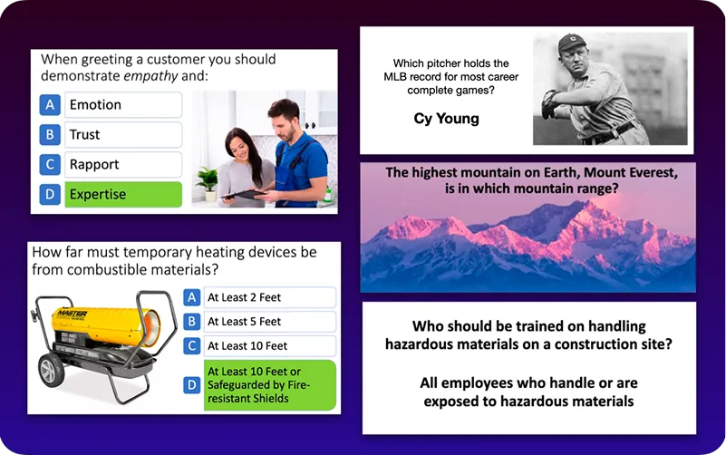 Create media-rich questions and Info Screens using our ready-made PowerPoint templates.